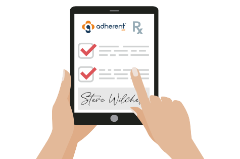 After pharmacist consult, the adherent360 tablet allows copayment & patient signature at bedside and is prepared for discharged.